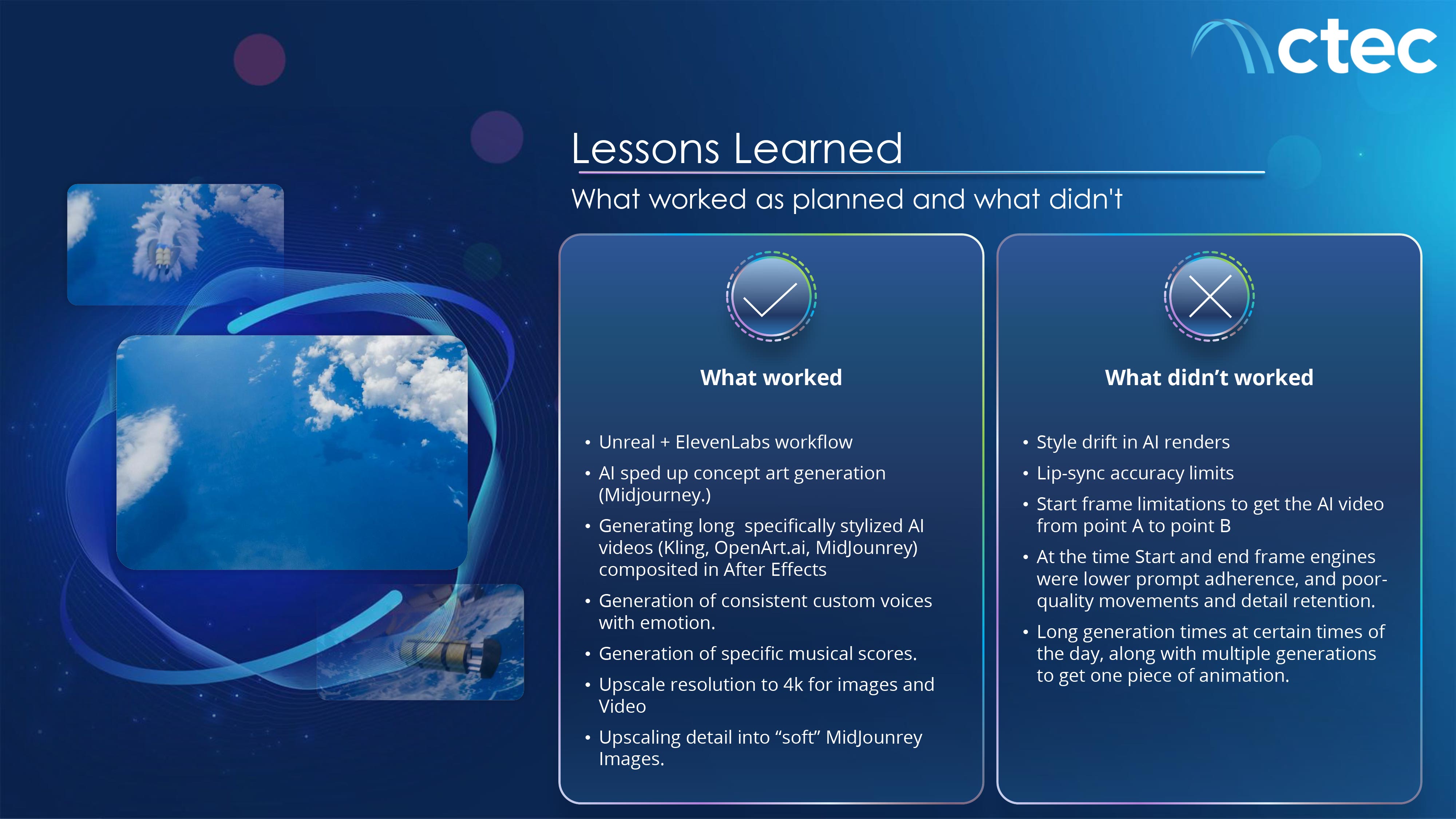 Delivered an award-winning interactive capstone recognized with a 2025 MarCom Platinum Award for excellence in digital media. The hybrid AI + real-time production pipeline accelerated creative iteration while maintaining technical precision, accessibility compliance, and deployment readiness. Despite compressed timelines and concurrent production demands, the final experience successfully transformed complex sustainment cost management processes into an engaging, scalable simulation for the Defense Acquisition Workforce.